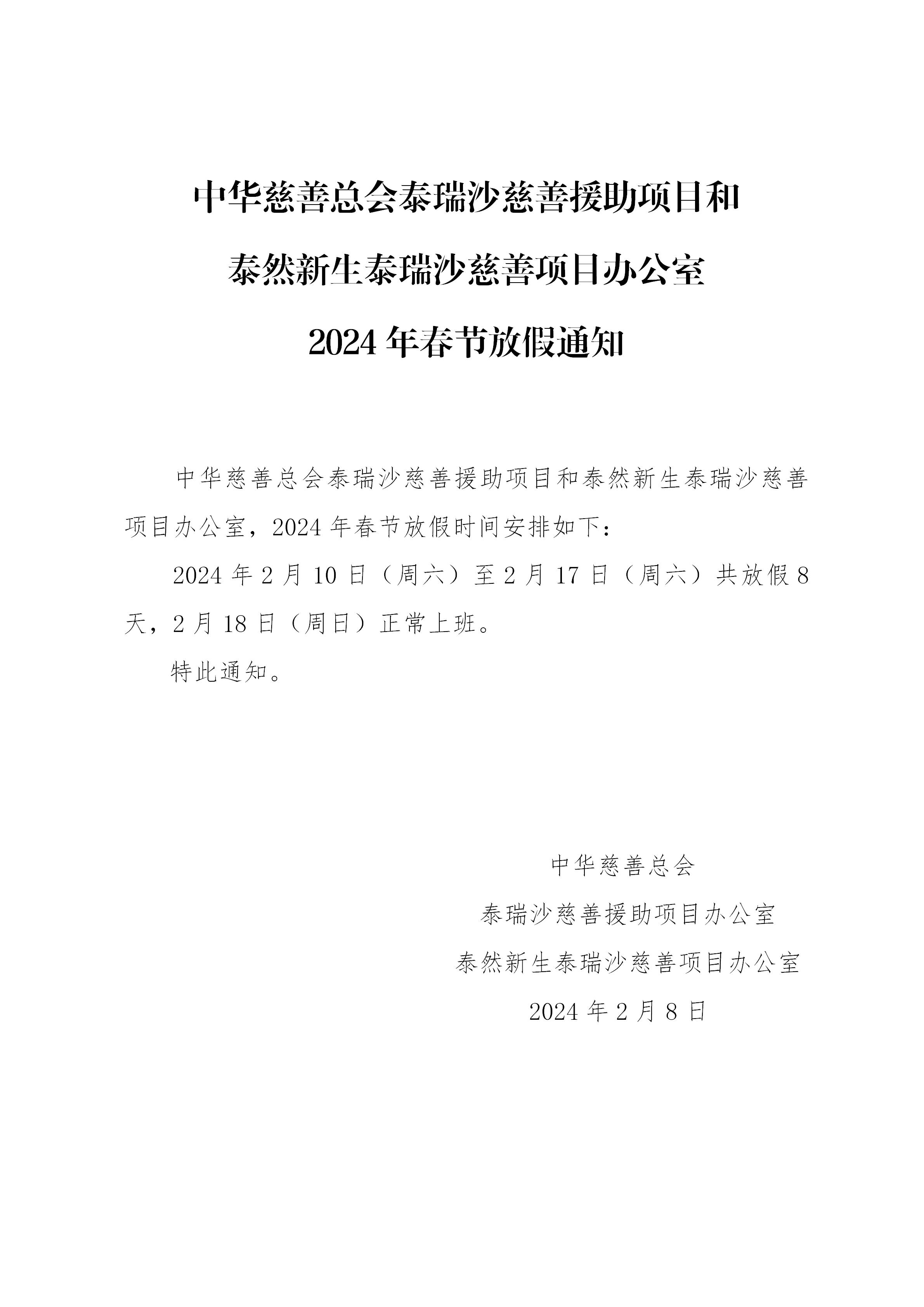 关于项目办公室2024年春节放假通知