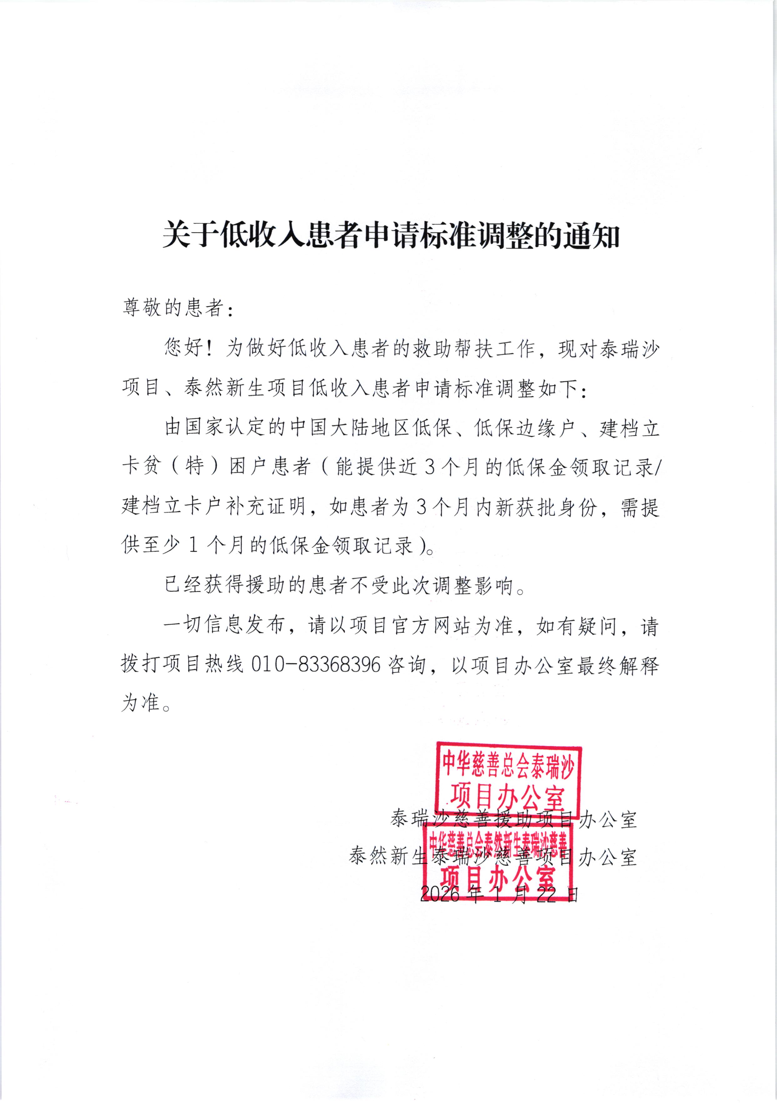关于低收入患者申请标准调整的通知